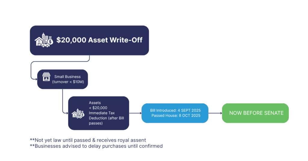 It’s important to note that the $20,000 threshold does not apply until the Bill is passed by both houses of parliament and receives royal assent.